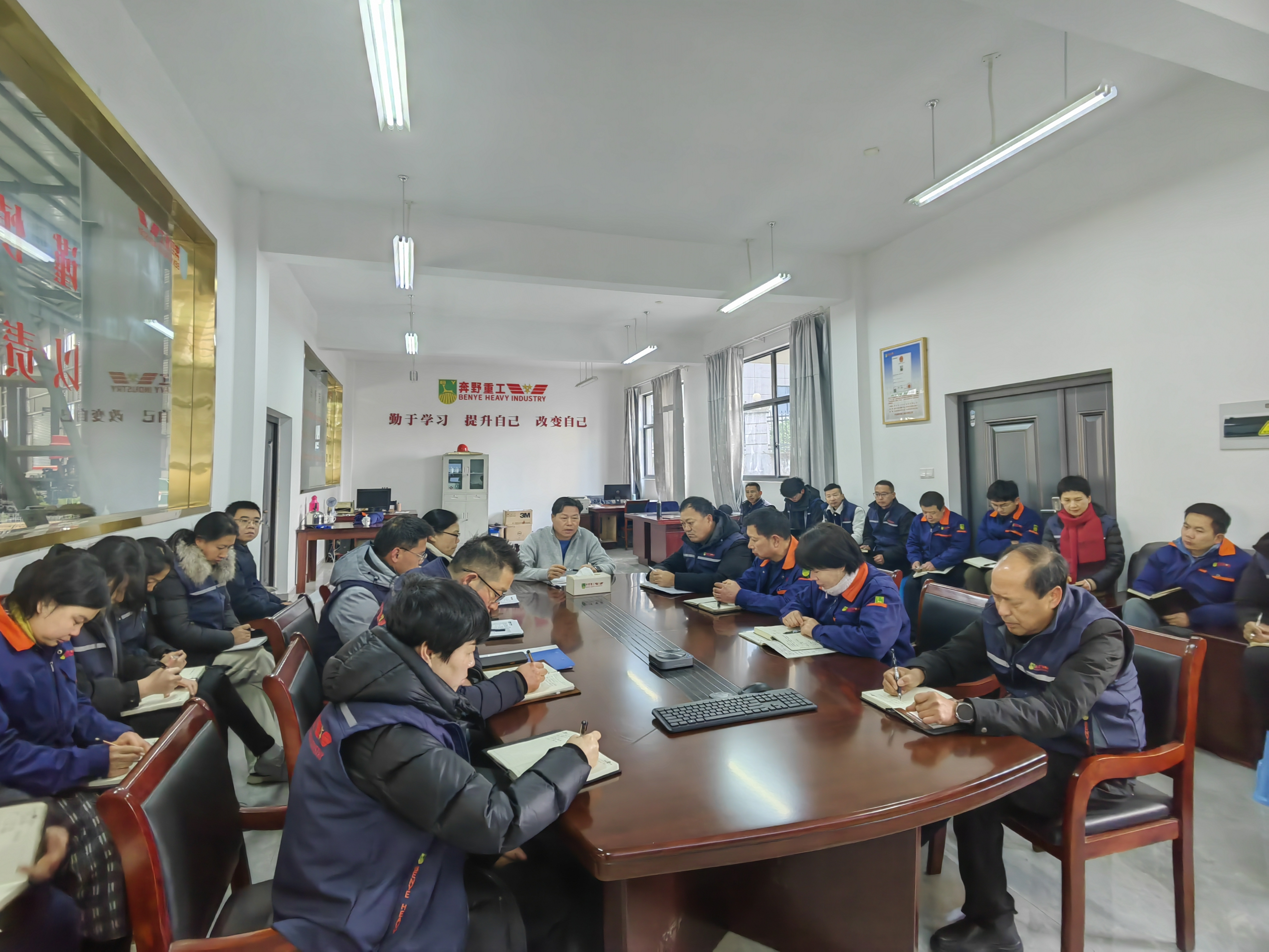 開(kāi)工首日,奔野重工召開(kāi)以“將安全生產(chǎn)始終放在首位,雙廠區(qū)齊發(fā)力拼搏年度目標(biāo)”為主題的春節(jié)后開(kāi)工會(huì)議,會(huì)議由董事長(zhǎng)王興洪主持,各部門(mén)負(fù)責(zé)人、車(chē)間主任及全體科室人員參加。
